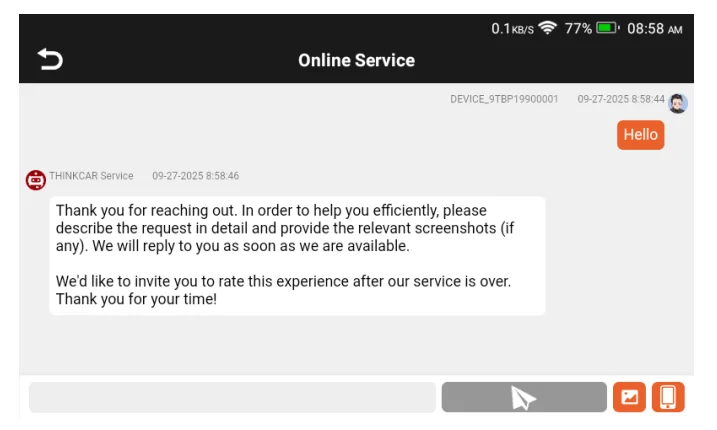 To better serve our buyers, if you account any issue you don't understand during diagnosis, in addition to consulting with our online customer service team, you can also share your desktop with our technicians remotely to help answer questions about your vehicle. Click [remote assistance].