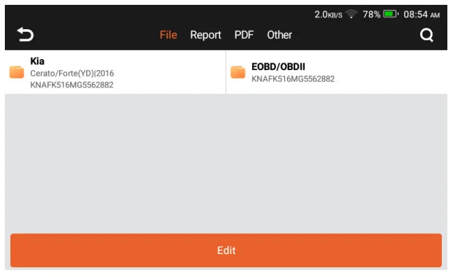 Diagnosis report, which forms a document with the diagnosis results. It can be exploded to our server gold saved as a PDF document. This data can be registered with the car owner or professionals for analysis, or it can be archived for future reference.